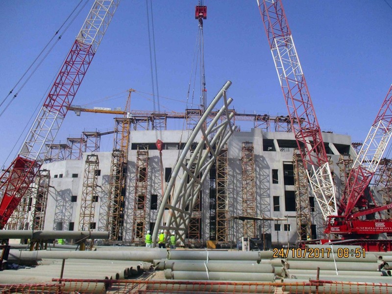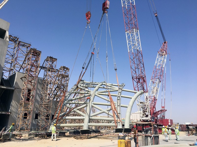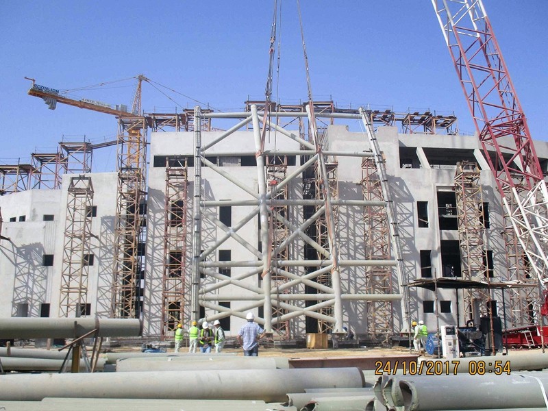The KFU project is located in the city of hofuf in Saudi Arabia. The overall steel structure is divided into four parts: the shell, the frame, the link bridge and the stairs. The shell is a single-layer reticulated shell structure, which is divided into 31 Units and the heaviest unit is 54 tons.