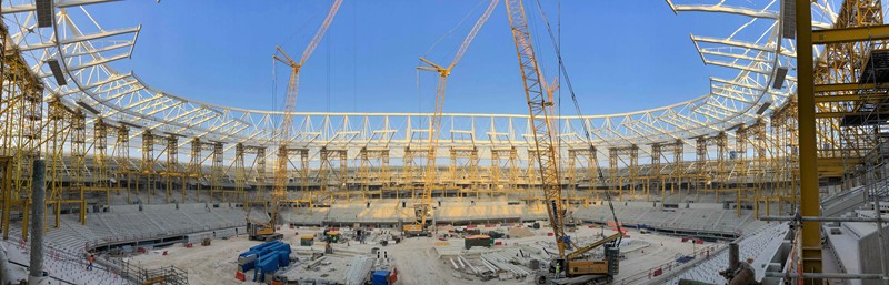 At the second site of Doha, Qatar, as Al Rayyan Stadium of 2022 World Cup Stadium, the main structure has been lifted and unloaded more than half.