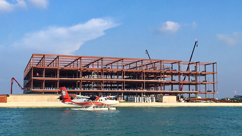At the site of Maldives, the installation of the main steel structure of Velana International Airport Seaplane Terminal Building has been basically completed and the rudiment has been formed.